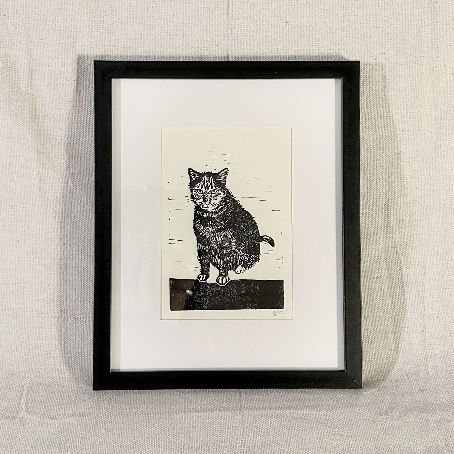 Seated tabby cat handmade Linocut block print. Inspired by Saturn. The perfect companion for those who love a grumpy tabby - make a statement with this one-of-a-kind piece of art!