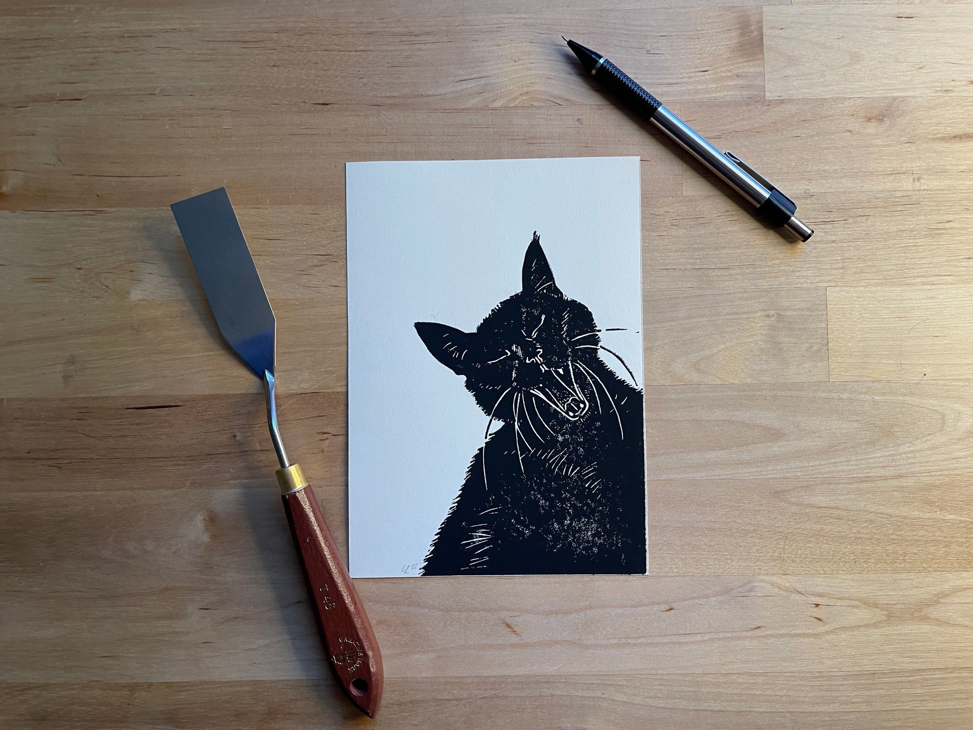 Check out this adorable handmade block print featuring a sleepy black cat mid-yawn! πββ¬π΄ Perfect for any cat lover's collection! π»πββ¬